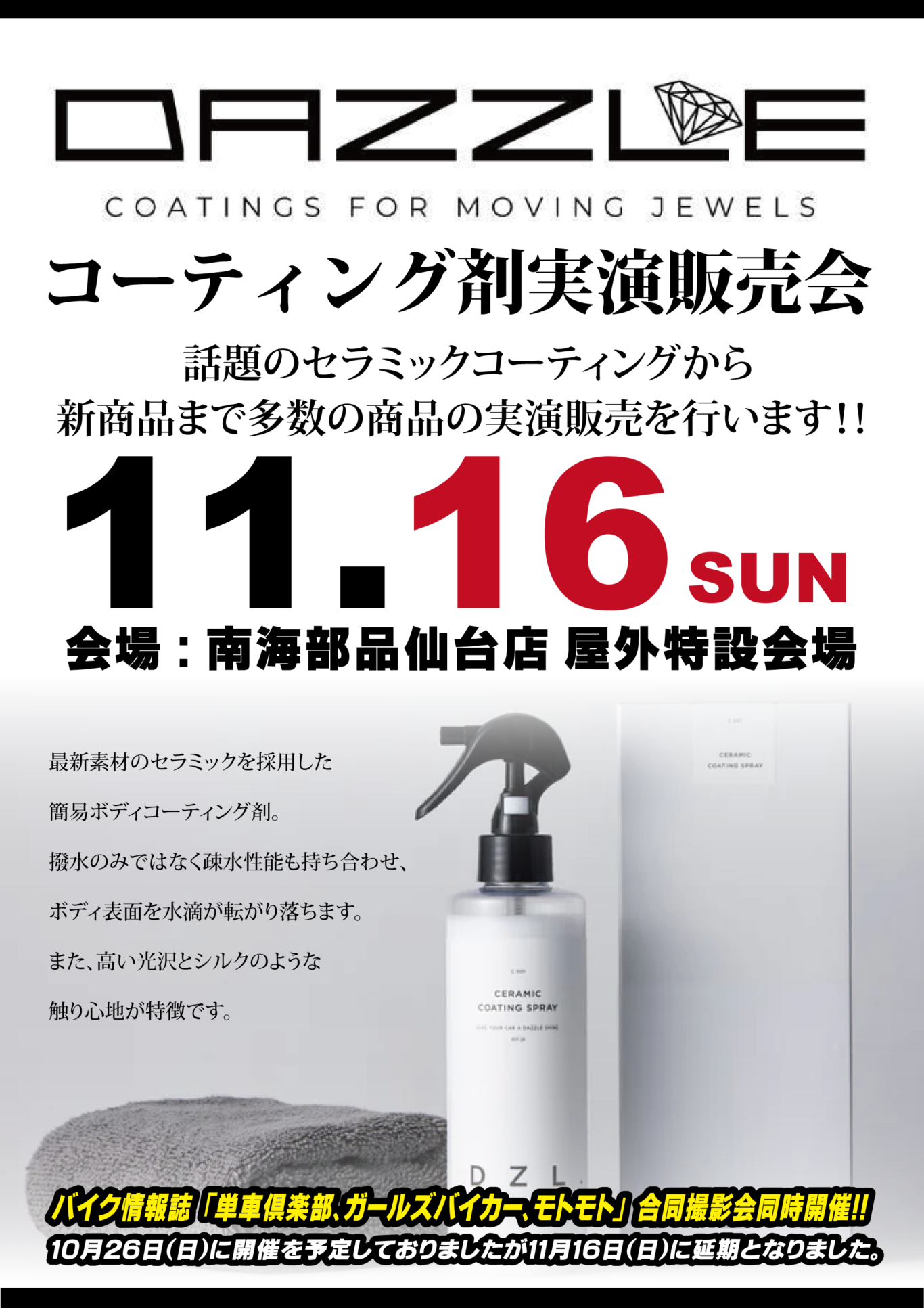 DAZZLEコーティング剤実演販売会も開催!!